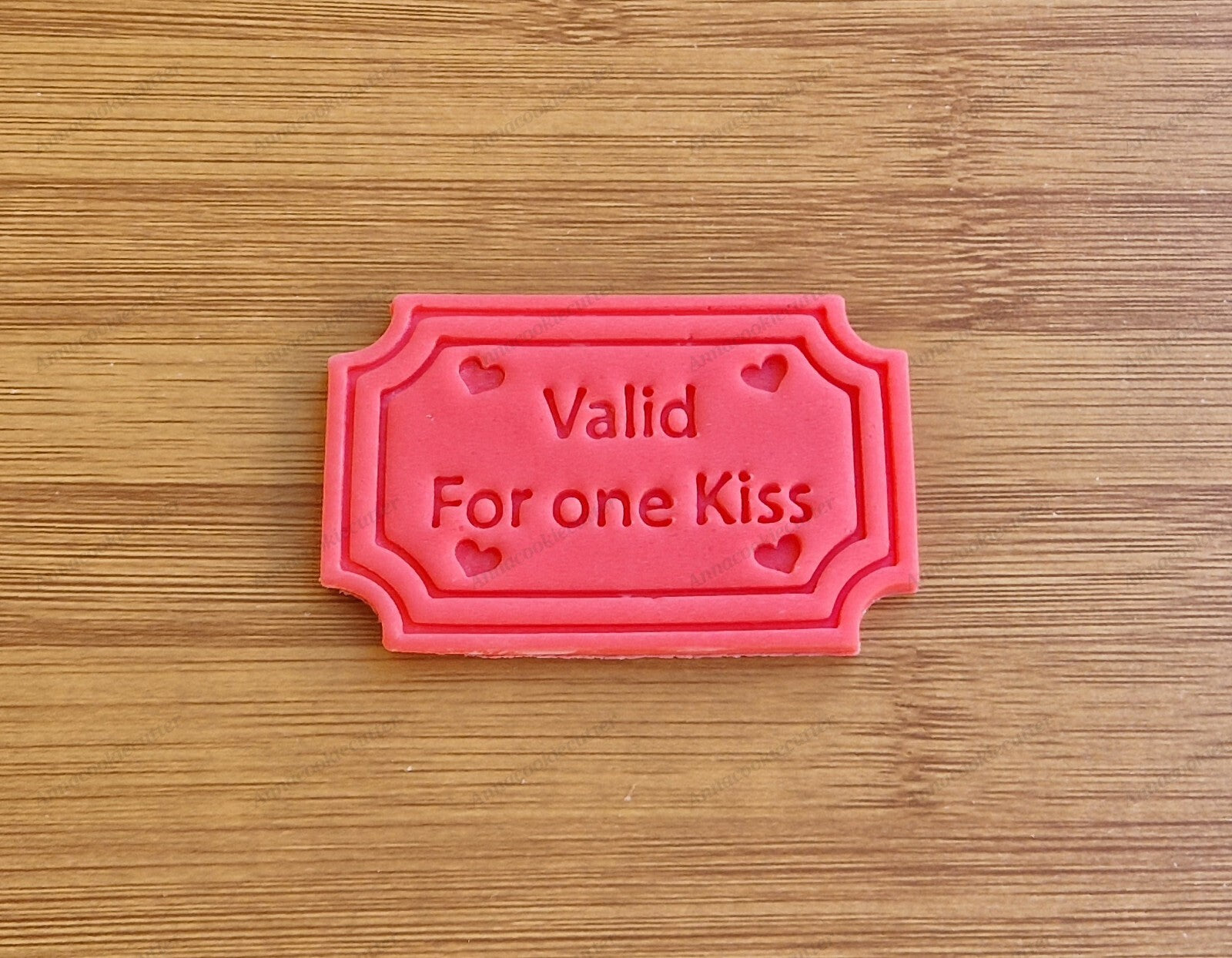 Personalizza la tua formina per biscotti con un testo a tua scelta su 2 righe, massimo 12 caratteri per riga ⬇️ Esempio 1: Valido per un bacio Esempio 2: Ti amo per sempre